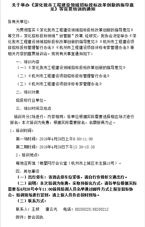 關(guān)于舉辦《深化我市工程建設(shè)領(lǐng)域招標(biāo)投標(biāo)改革創(chuàng)新的指導(dǎo)意見(jiàn)》等宣貫培訓(xùn)的通知
